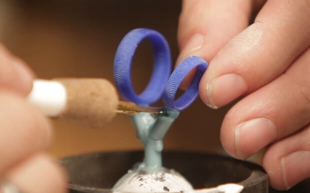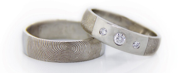 3D打印首飾提供了為準備步入禮堂的新人們訂購戒指的可能,與眾不同的是,每個人都能定制化自己的結婚戒指。服務的流程為:客戶除了指定戒指的款式與尺寸外,可以提供自己的指紋照片檔案給他們,將照片的指紋紋路制作成STL檔案之后,透過3D打印機制作出模具,最后生產出客戶自訂的戒指,從送件到取貨只要三個工作天。